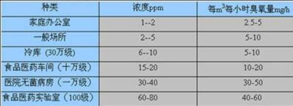 臭氧發生器的選擇:先按臭氧滅菌的效率,即參照《消毒技術規范》的標準確定臭氧滅菌的濃度(C):對空氣中浮游菌,臭氧滅菌濃度為2~4ppm;對物體表面的沉降菌落,濃度為10~15ppm(臭氧滅菌濃度參考《消毒技術規范》)。臭氧的自然半衰期(S),參比狀態下為23min左右,一個小時的衰退率為61%。設計:應用臭氧滅菌60min時達到要求濃度后,繼續保持一段時間(1~1.5小時),即可得到機械設備和建筑物體表面沉降菌落徹底殺滅的作用,達到化學熏蒸大消毒的效果。